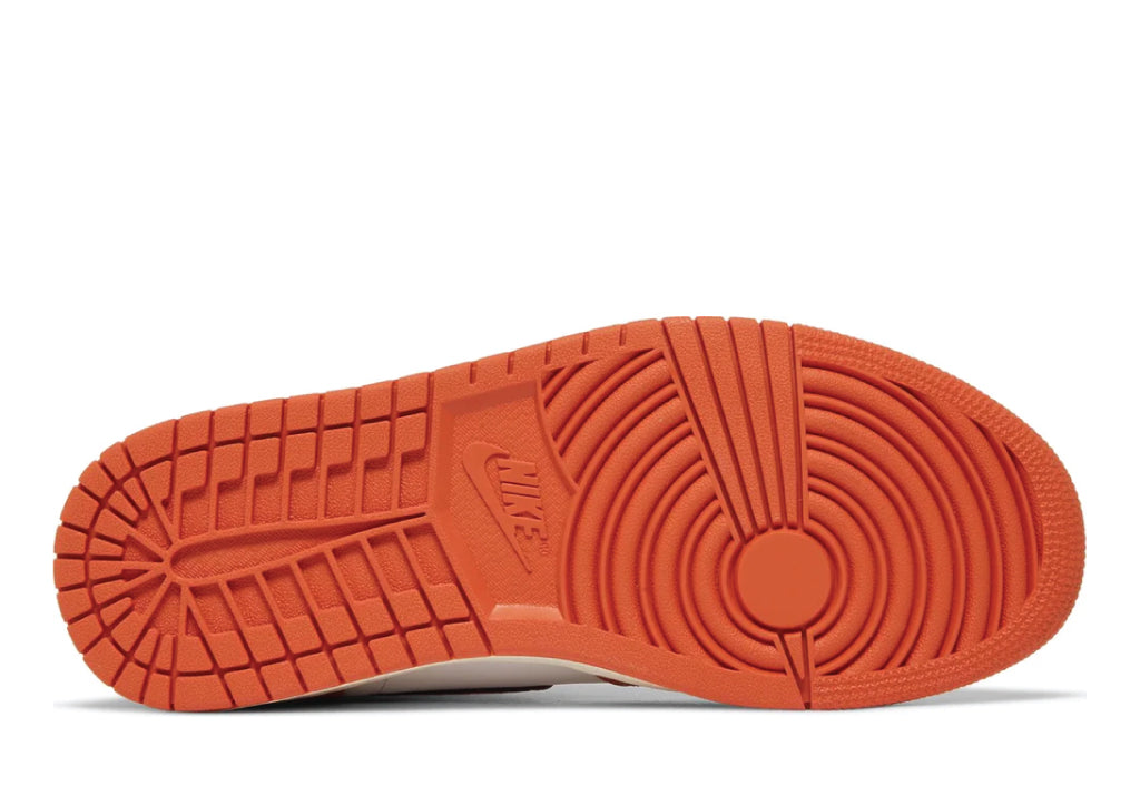 The Air Jordan 1 Retro High OG 'Starfish' brings a warm, standout color to the classic silhouette. Featuring a crisp white leather base with starfish orange overlays and brown accents, this pair nods to vintage flight jackets while keeping the timeless Jordan 1 shape. OG branding and cushioned support finish the look.