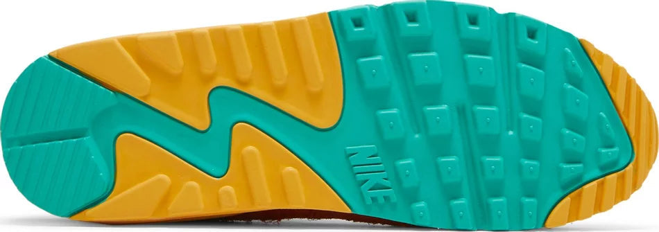 The Nike Air Max 90 SE 'Running Club - Roma Green' is imbued with forward-thinking innovation for a street lifestyle. Introduced in April 2019, this 'Running Club - Roma Green' edition mimics movement with a radiating wave pattern molded into the mesh upper. Tonal laces, synthetic frames and a pull tab amplify the look. A Swoosh-branded mudguard and a bulging, translucent Air unit deliver a sleek, cushy base.