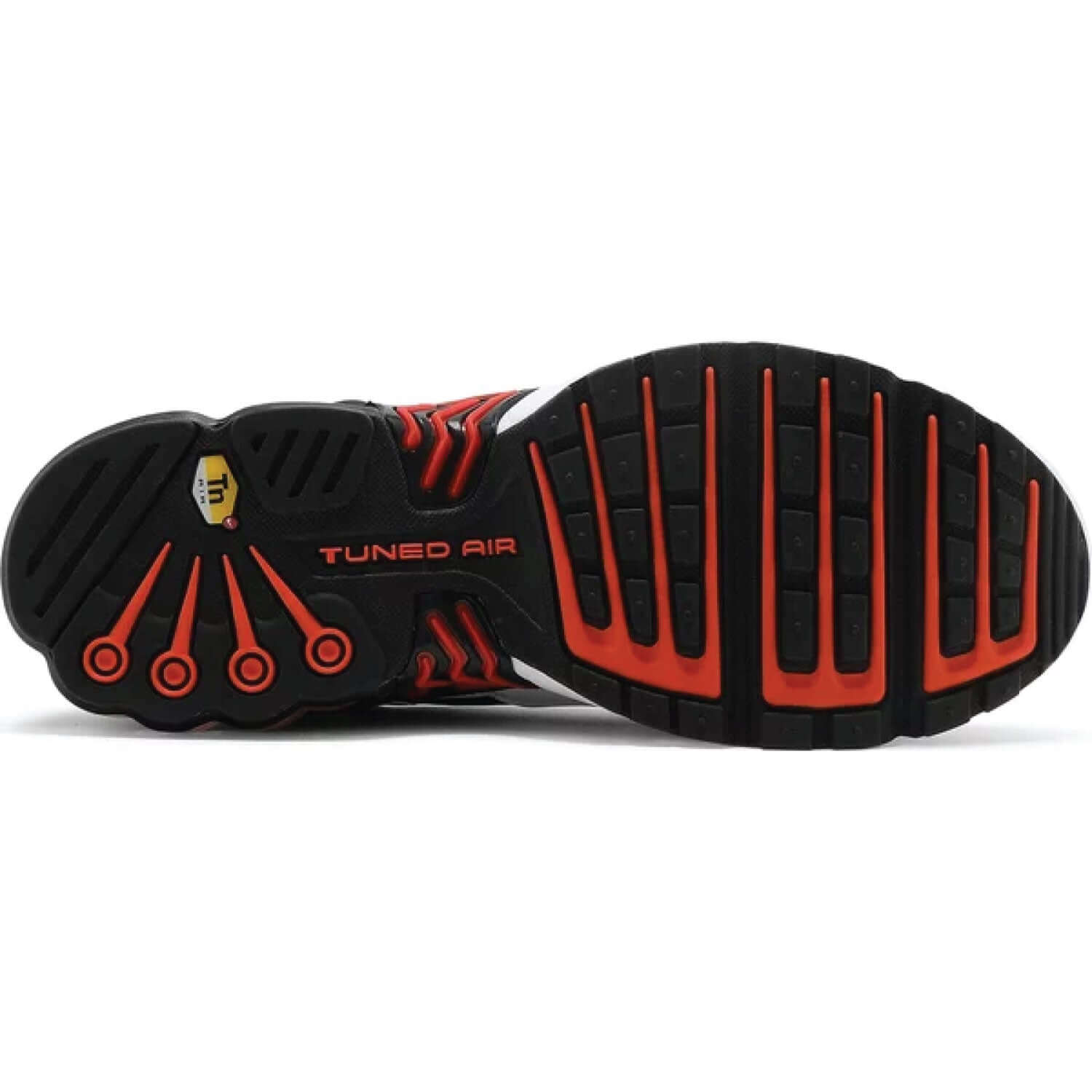 Exciting new colourways of the Air Max Plus 3 are on the horizon, including the striking “Black/Orange-University Red” edition. This sneaker boasts a stealthy black mesh and leather upper, accentuated with dynamic red and orange streaks through plastic overlays. Unique details include broken diagonal stripes on the heel, an island-type midsole with smaller Air Max units at the front and a larger unit in the heel. The design is completed with “Tuned Air” text on the toe and heel, and the iconic yellow “TN” badges, making it a standout addition to any collection.