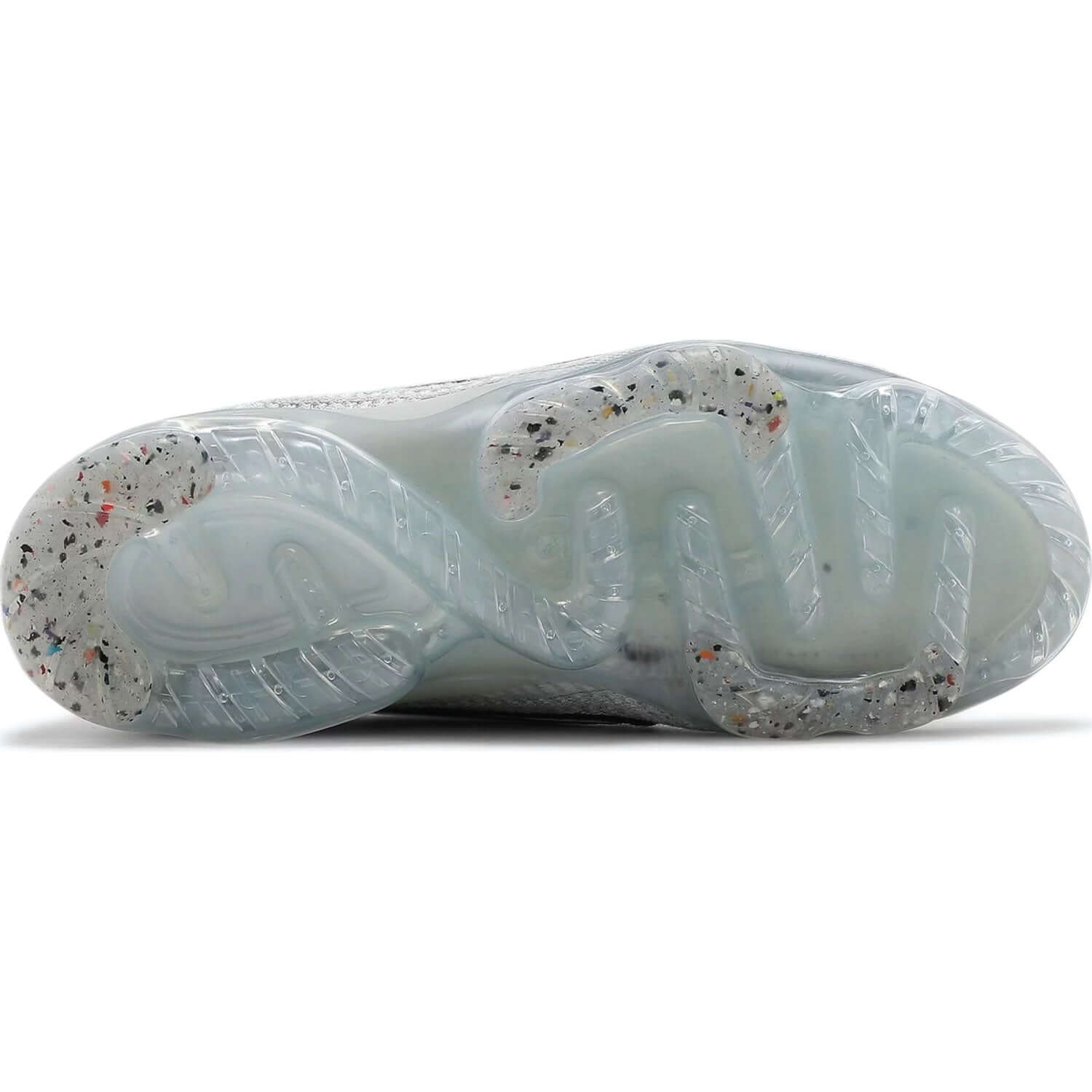 The Air VaporMax 2021 Flyknit GS 'White Metallic Silver' is designed by Zachary Elder and was released on January 28, 2022. The Air VaporMax 2021 Flyknit GS 'White Metallic Silver' shoes feature a white Flyknit upper with metallic silver accents and a clear VaporMax sole. The shoes are designed with a lace-up closure and a reinforced heel for added support. Made with at least 40% recycled content by weight, the Nike Air VaporMax 2021 FK defines innovative comfort. Super stretchy and supportive Flyknit fabric feels like wearing a sock, plus VaporMax Air from heel to toe gives you ultra-lightweight bounce.