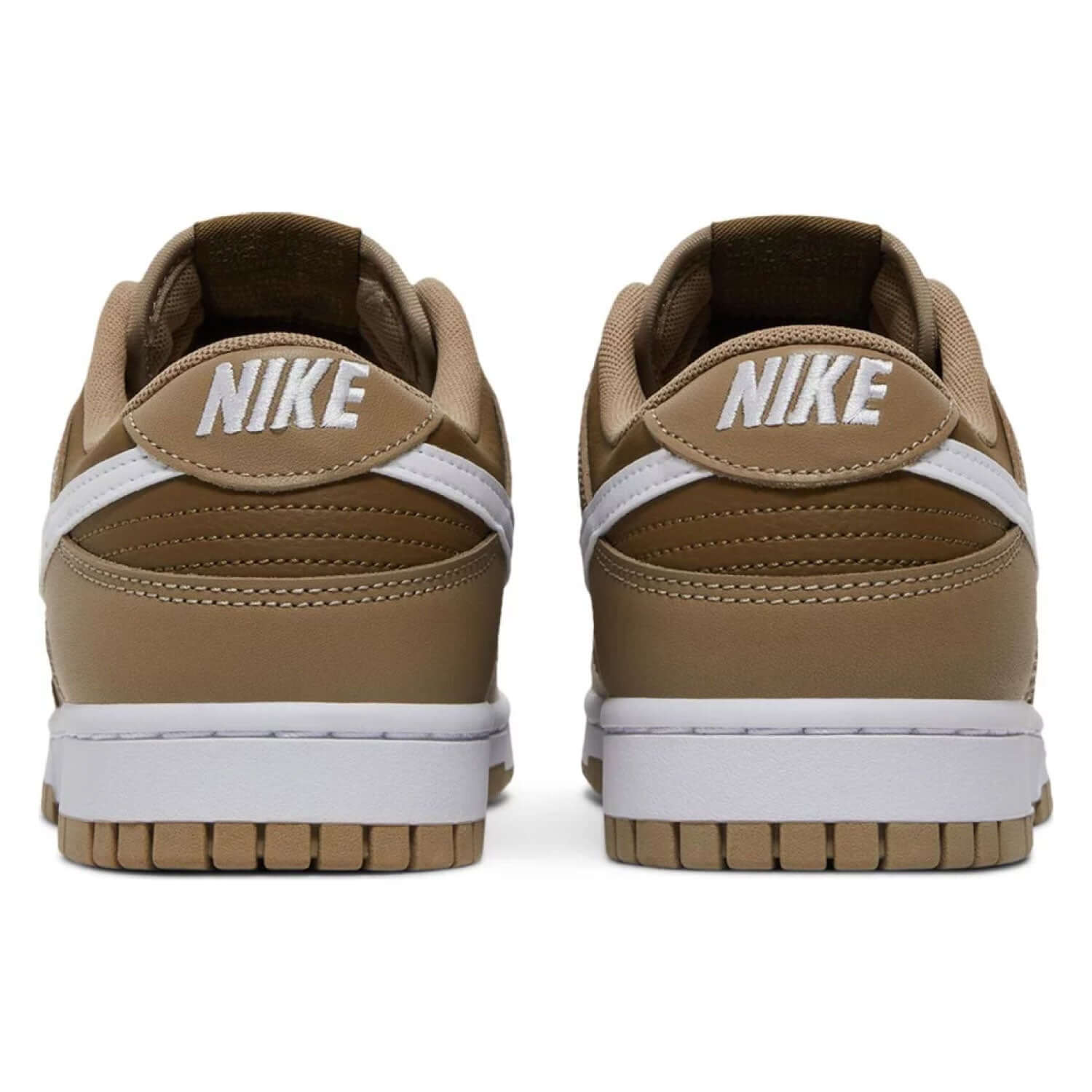The Dunk Low ‘Judge Grey’ complements the shoe’s timeless lines with neutral earth tones. The leather upper combines a dull brown base with dark tan overlays and a white signature Swoosh. A woven tag adorns a brown nylon tongue, while a tonal wordmark is embroidered on the tan leather heel tab. The low-top rests on a rubber cupsole, featuring stitched sidewall construction and an interior foam wedge for a cushioned ride.