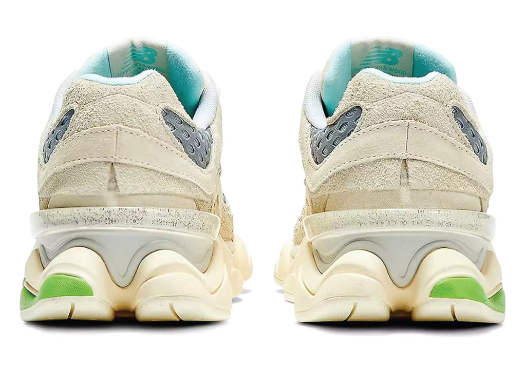 The New Balance 9060 Bricks & Wood is a bold collaboration blending SoCal creativity with futuristic design. Featuring a fuzzy green upper with suede overlays and soft cream tones, this pair reflects Bricks & Wood’s distinctive aesthetic. The chunky midsole, ABZORB and SBS cushioning, and exaggerated proportions give this sneaker its unmistakable presence—perfect for those who move with originality.