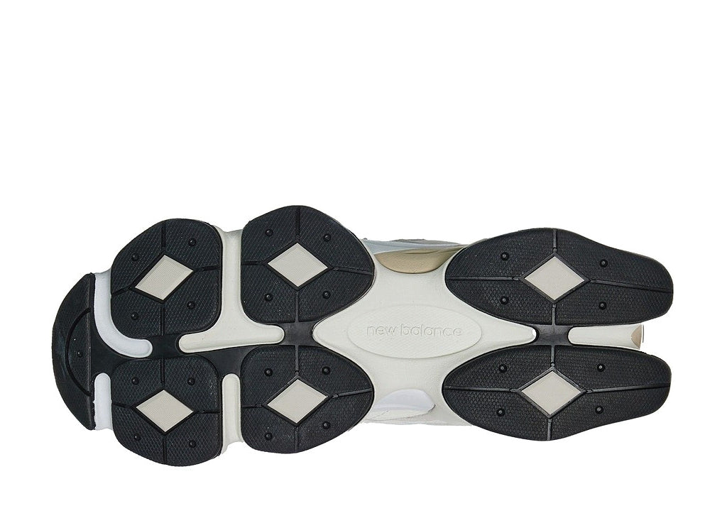 The New Balance 9060 Sea Salt Castlerock fuses retro influences with futuristic structure. With its layered suede and mesh upper in neutral Sea Salt and deep grey Castlerock tones, this silhouette offers both texture and balance. The exaggerated midsole, inspired by early 2000s runners, features ABZORB and SBS cushioning for enhanced comfort and support. A perfect blend of archival style and modern innovation.